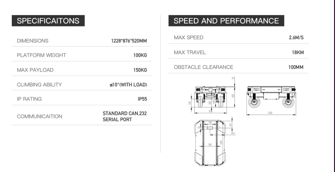 Featuring a Four-Wheel Independent Suspension system, this robot excels in navigating challenging terrains with ease. With an 150 kg load capacity, it enhances maneuverability, passability, and safety, especially on terrains with slopes exceeding 10°.